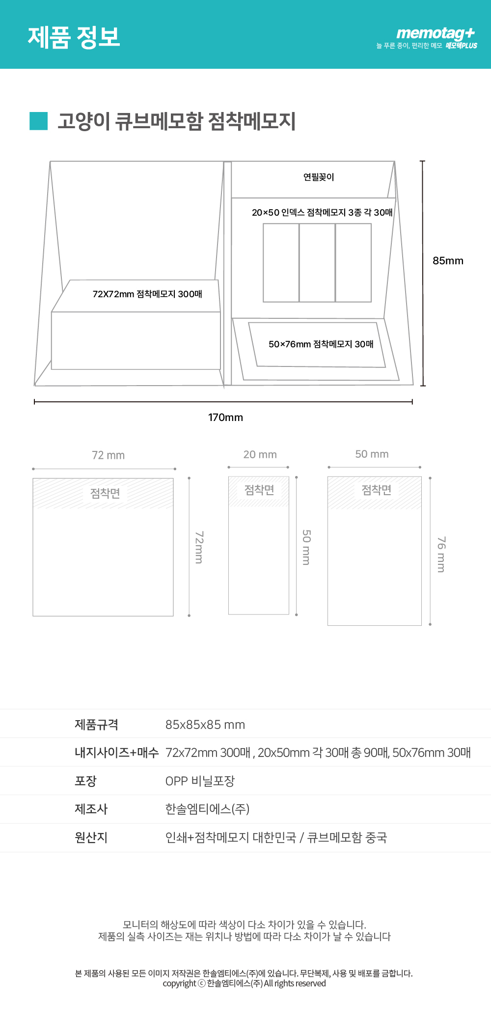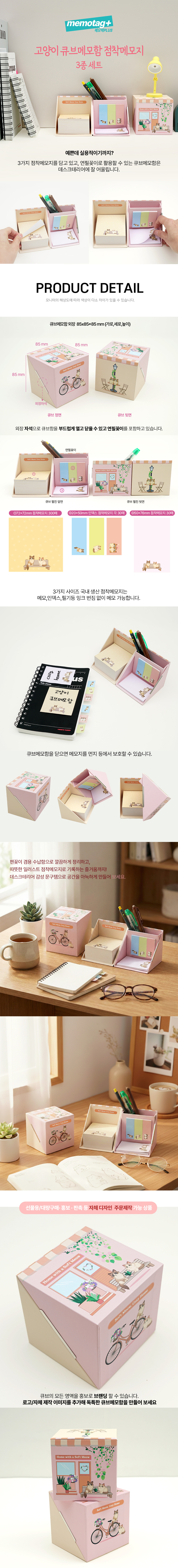 메모텍+ 고양이 큐브메모함 점착메모지 플래그 인덱스 연필꽂이