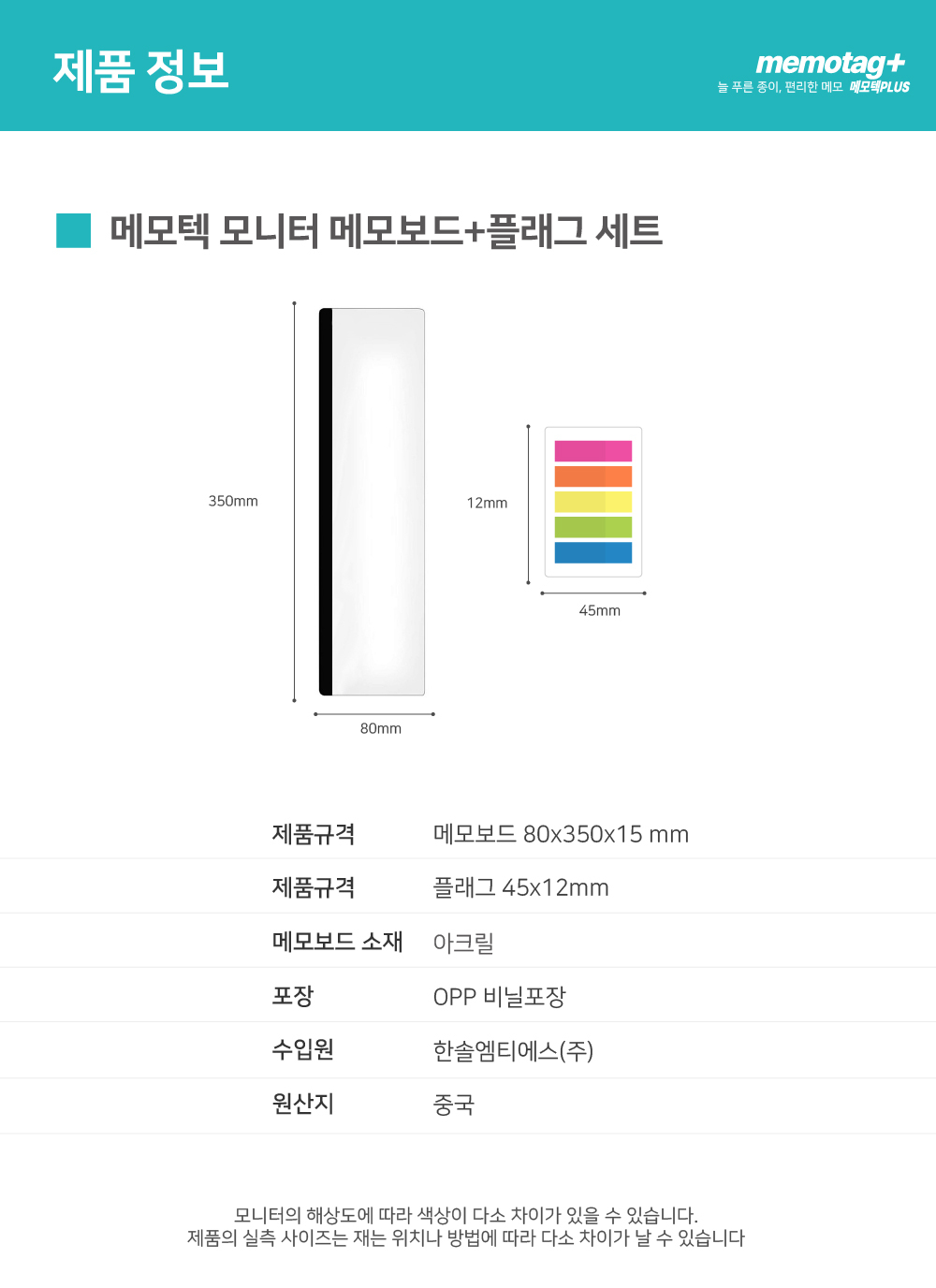 메모텍 모니터 노트북 컴퓨터 투명 메모판 메모보드+플래그 세트