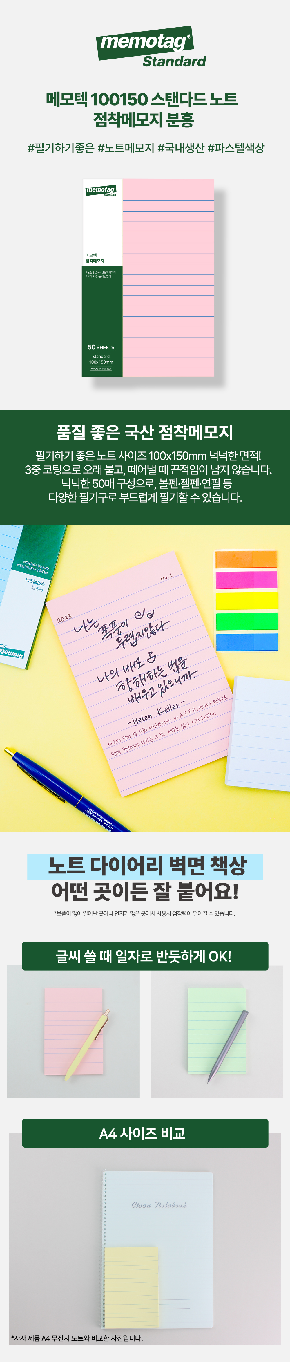 100150 스탠다드 노트 점착메모지 분홍