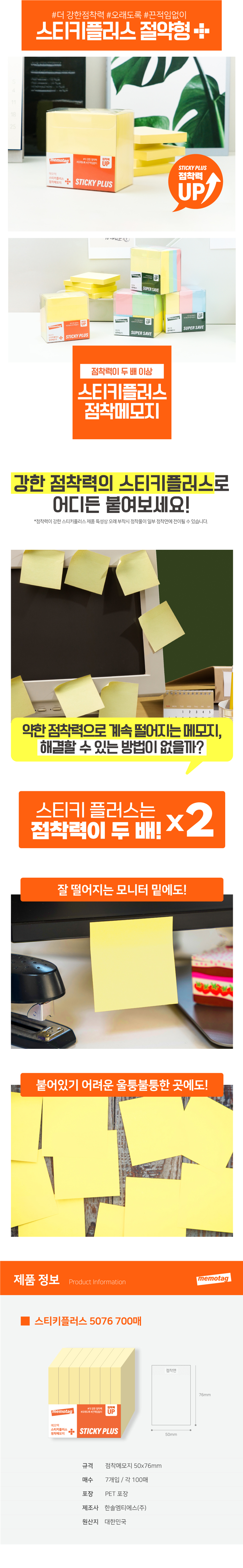 절약형 스티키플러스 5076 700매 점착메모지