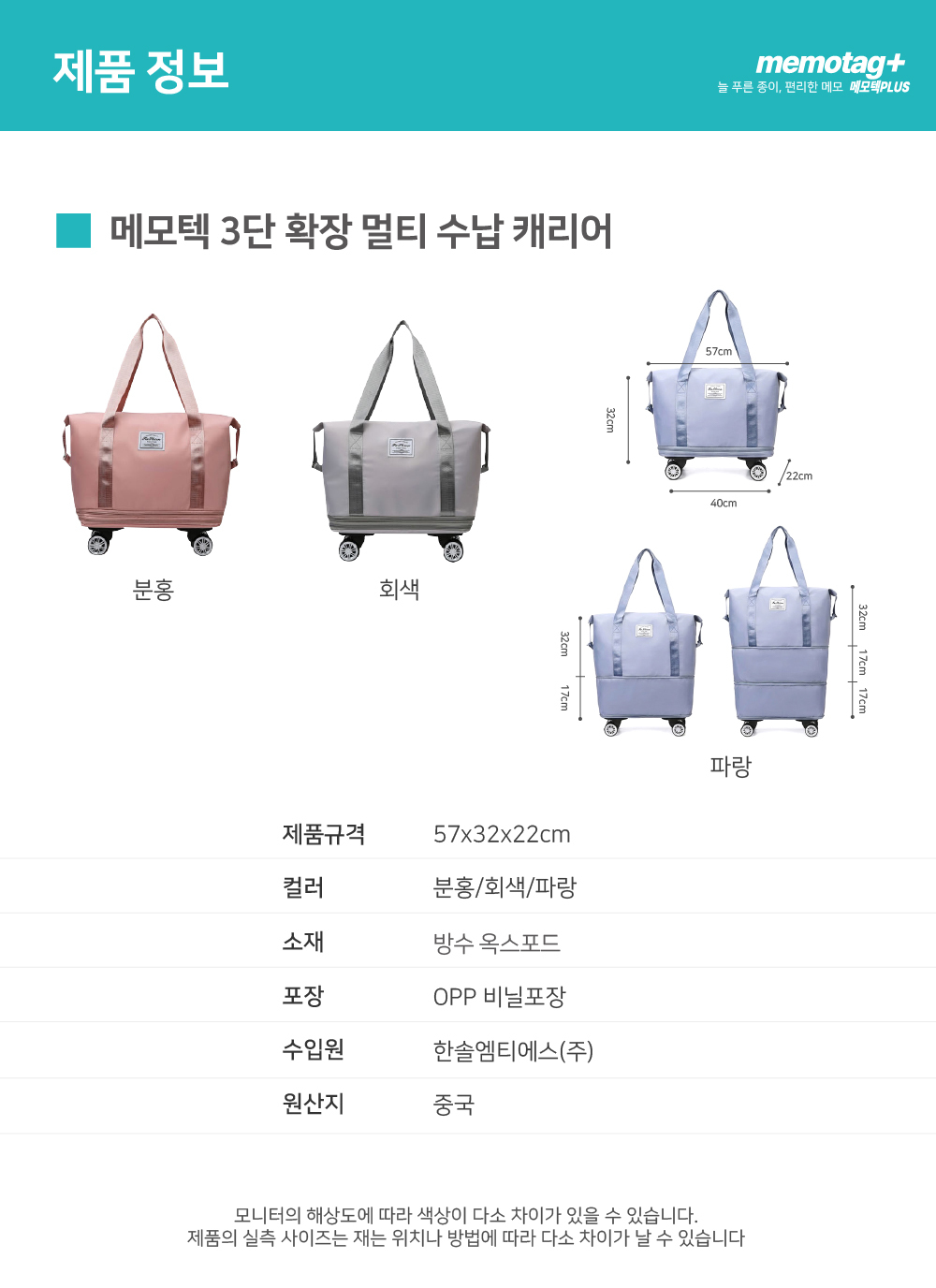 메모텍 3단 확장 변신 멀티 수납 기내용 여행 가방 캐리어